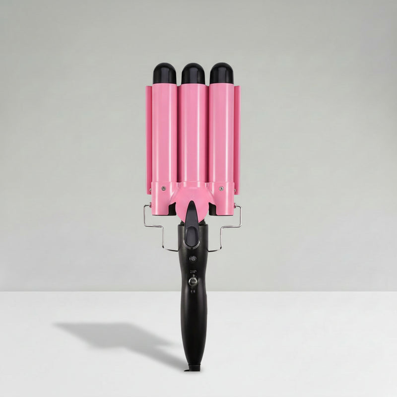 Divide tu cabello, sujeta la rizadora en una pequeña sección durante unos segundos y suéltala. Baja por el mechón y repite. Los tres barriles crean ondas uniformes rápidamente.